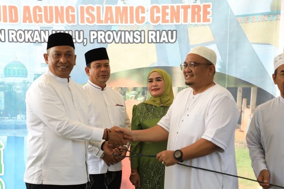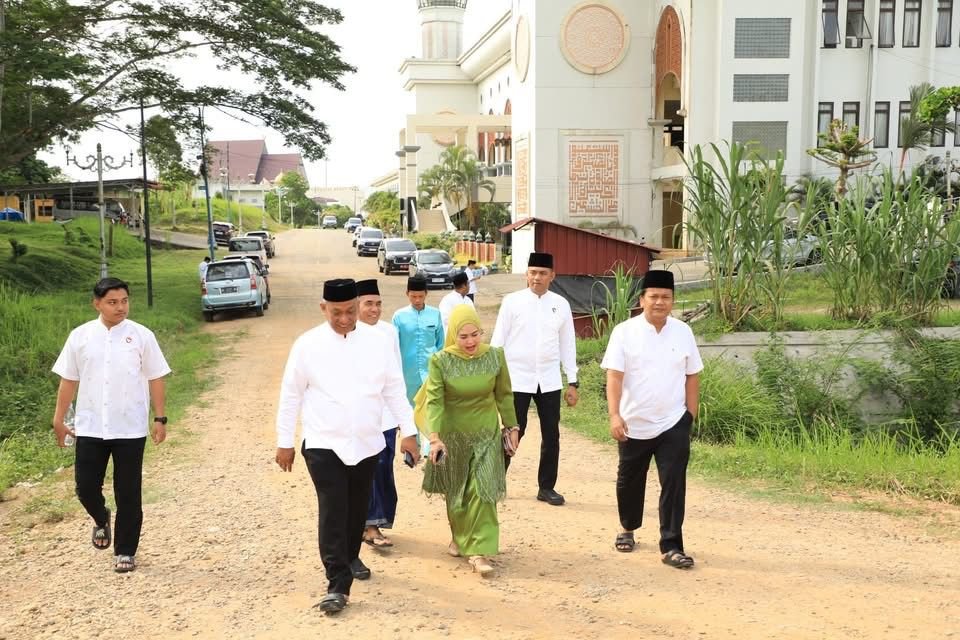 ROKAN HULU – Bupati Rokan Hulu Anton, ST, MM didampingi Ketua TP PKK dr. Yeni Dwi Putri Anton dan Wakil Bupati H.Syafaruddin Poti, SH, MM didampingi Ketua GOW Hj.Masni Taher Poti melaksanakan Shalat Idul Adha 1446 H /2025 M bersama Ribuan Umat Muslim lainnya di Islamic Center Rokan Hulu, Jumat (06/06/2025)