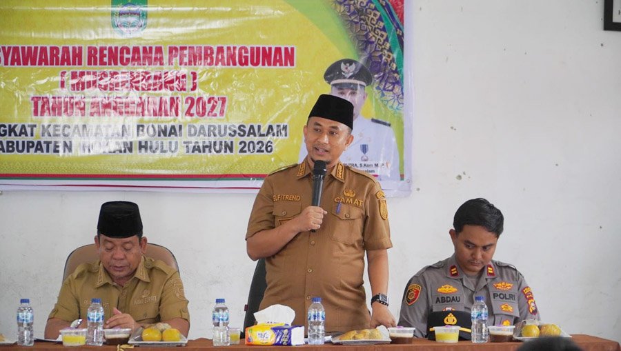 Wakil Bupati Rokan Hulu, H. Syafaruddin Poti, dalam sambutannya memberikan apresiasi atas kinerja Pemerintah Kecamatan Bonai Darussalam yang dinilai mampu menyelenggarakan Musrenbang secara tertib, partisipatif, dan tepat sasaran.